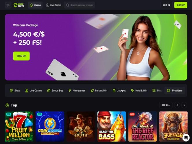 يُعدّ MateSlots كازينوًا ضخمًا على الإنترنت، يرحّب بشكل أساسي باللاعبين من أستراليا، ويدعوهم للانضمام إلى عالمه الممتع من خلال لعب آلاف ألعاب الكازينو، بما في ذلك ماكينات القمار بأموال حقيقية، وألعاب الموزع المباشر، وألعاب الطاولة، وألعاب الحظ الفورية. كما تشتهر العلامة التجارية بخطتها الترويجية الشاملة، والتي تتضمن مكافآت، وبرامج ولاء، وبطولات، وسحوبات يانصيب، وغيرها الكثير.