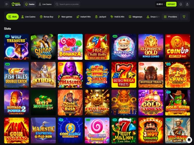 يُعدّ موقع MateSlots بلا شك أحد مواقع الكازينوهات الإلكترونية التي تُقدّم مجموعةً هائلةً من الألعاب. تضمّ مكتبة الألعاب آلاف الألعاب، وقد تمكّن فريق العمل من تحقيق ذلك من خلال الحصول على تراخيص من أكثر من 140 مطوّر برامج ، وهو عددٌ كبيرٌ بكلّ المقاييس.