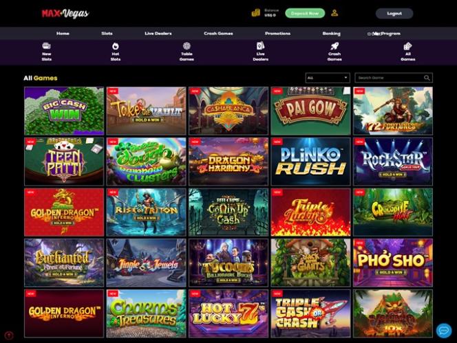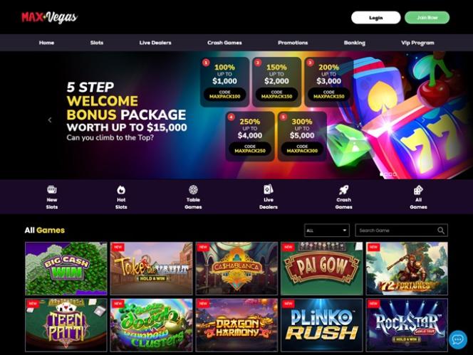 يجمع كازينو ماكس فيغاس بين ألعاب الكازينو والمراهنات الرياضية، مع مجموعة من المكافآت لخلق جوّ مثير وغامر. يرحب باللاعبين من الولايات المتحدة الأمريكية مع مجموعة مختارة من ألعاب السلوتس، وألعاب كراش، وألعاب شهيرة مع موزع مباشر، ومباريات رياضية. يحرص هذا الكازينو، الذي يدعم العملات المشفرة، على تقديم مكافآت العملات المشفرة، ومكافآت الولاء، واسترداد النقود، بالإضافة إلى عروض ترويجية منتظمة أخرى.