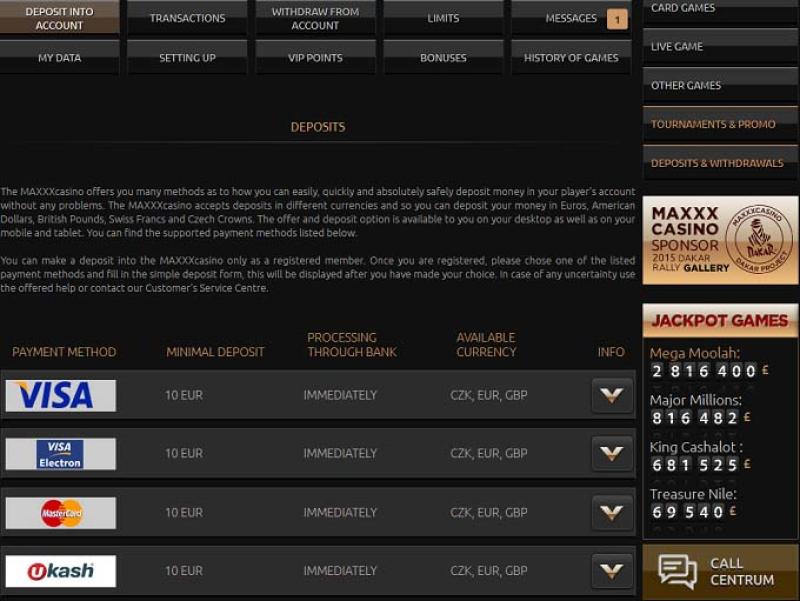 كازينو ماكس يعمل بنظام Microgaming, Net Entertainment, Play'n GO and Games Global ، وتُقدم ألعابه عبر منصة ويب. كما يتيح الموقع الإلكتروني المخصص للهواتف الذكية أو الأجهزة اللوحية اللعب.خيارات الخدمات المصرفية في Maxxx Casino