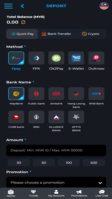 💰 الحد الأدنى للإيداعMYR10/SGD10