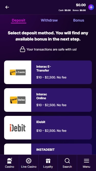 يقدم هذا المشغل طرق الدفع الأكثر شيوعًا لتسهيل شحن حسابات اللاعبين: المحافظ الإلكترونية أو بطاقات الدفع أو التحويلات المصرفية القياسية.