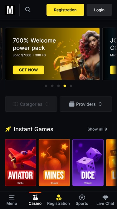 سيكون لدى محبي الألعاب الفورية تحت تصرفهم عدد كبير من العناوين العصرية مثل Aviator و Vortex و Turboplinko و JetX و Mines و Mines و Plinko و Aviamasters و Goal و Hilo و Hotline و Keno و Dice و Stairs و Limbo Rider و Fruit Towers و Aero و Multiplayer Mines و Save the Princess و Book of Mines و Donny King و PumpedX و Hamsta و Double Roll و Dice Thrice و Crash X Football و Towers و 1Tap Mines و Plinko و Minesweeper و Minesweeper XY و Dice Twice و Magic Keno و Neko و New و Jewel Clicker و Turbomines…
