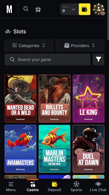 تم تنظيم كل محتوى المقامرة المتاح بشكل جيد في الفئات التالية: الألعاب الساخنة، الكازينو المباشر، الألعاب الفورية، ألعاب الطاولة، جميع ماكينات القمار، الألعاب الجديدة ، الرهان الإضافي وجميع الألعاب.