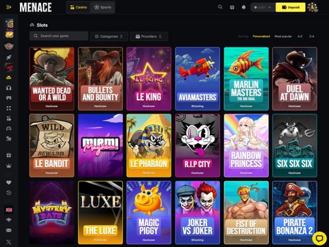 ستكون عملية التسجيل في Menace King بسيطة وسريعة، وبعدها يمكنك توقع معاملات دفع سريعة، وحزمة كازينو ترحيبية، ودعم فني على مدار الساعة، ومكافآت كبار الشخصيات، ومكافآت وعروض مميزة أخرى. كل هذا كان كافيًا لترك انطباع أولي ممتاز، لذا سنستكشف عروض الكازينو بمزيد من التفصيل، وندعوك لمتابعتنا!