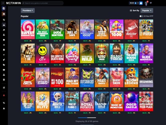 على سبيل المثال، يضم Metawin مجموعة واسعة من الألعاب، تضم أكثر من 3000 إصدار فريد من تطوير أكثر من 40 مطور برامج مختلف. يوفر الكتالوج تقريبًا كل أنواع ألعاب الكازينو الشهيرة التي يمكنك تخيلها، ومعظمها من إنتاج بعض من أبرز مزودي البرامج في هذا المجال.