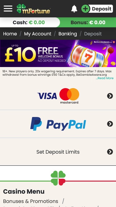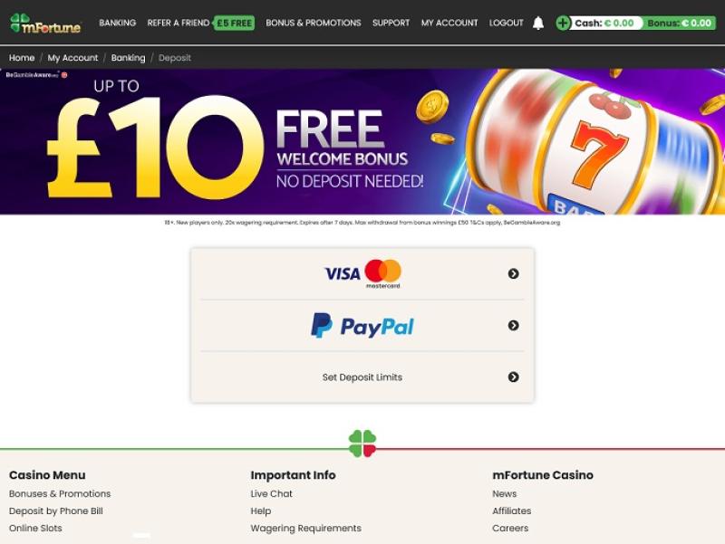 خيارات الخدمات المصرفية في mFortune Mobile Casino