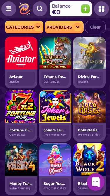 هنا، سيتمكن اللاعبون من تجربة ألعاب فورية جذابة وشائعة بين المقامرين المعاصرين. من بين الألعاب المتاحة: Aviator، وPaper Lanterns Crash Game، وThunder Land، وShenron Hunter، وGolden Clover، وPlinko، وLucky Coin، وMines، وSmash X، وImpossible X، وTroll Dice، وOctober Pub...