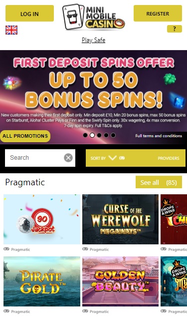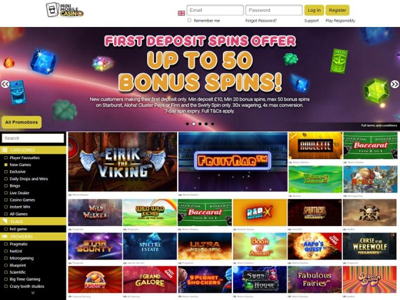 كازينو ميني موبايل يعمل بنظام Microgaming, Net Entertainment, Big Time Gaming, ELK Studios, EYECON, lightningboxgames, Realistic Games, Pragmatic Play, Skillzzgaming, Golden Rock Studios, Games Global, Blueprint Gaming, Merkur Gaming, NextGen, NYX Interactive, Inspired Gaming, Scientific Games, Iron Dog Studio, Foxium, Just For The Win, The Games Company, Rocksalt Interactive, 4ThePlayer, Crazy Tooth Studio and ReelFeel Gaming ، وتُقدم ألعابه عبر منصة لعب فوري على الويب. ولأن الكازينو يُركز على الهواتف المحمولة، يتميز الموقع بأيقونات كبيرة وسهولة التنقل. مع ذلك، يُمكن لعب كازينو ميني موبايل أيضًا عبر سطح المكتب، وإن لم يكن بنفس الروعة.المقامرة المسؤولة ودعم العملاء والأمان