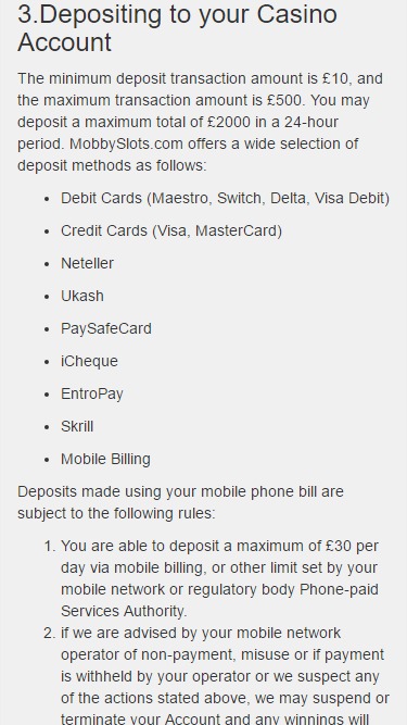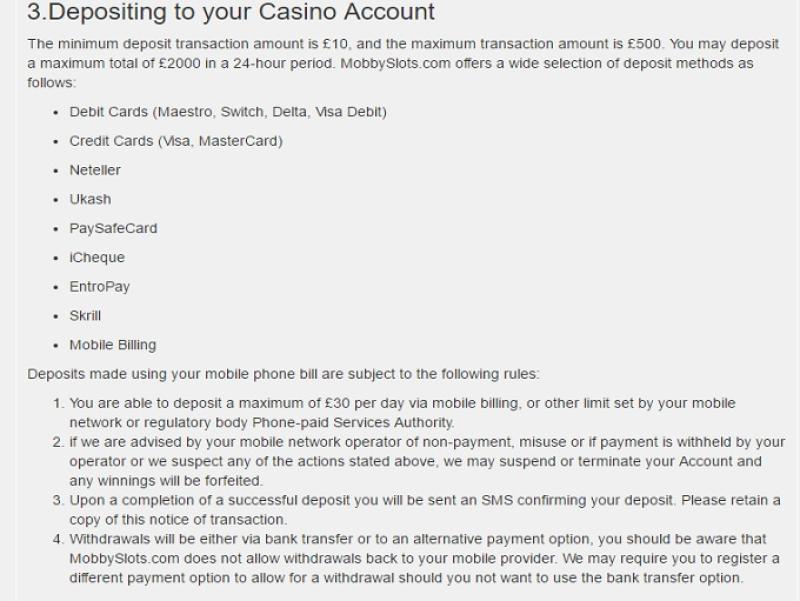 النظام المصرفي في كازينو MobbySlots ممتاز، حيث يوفر الموقع معالجة مدفوعات السحب في نفس اليوم. يتيح الموقع الإيداع والسحب باستخدام التحويل البنكي، وEntroPay، وMaestro، وMasterCard، وSkrill، وNeteller، وPaysafecard، وVisa. لا توجد حدود لسحب الأرباح، وهو أمر رائع.