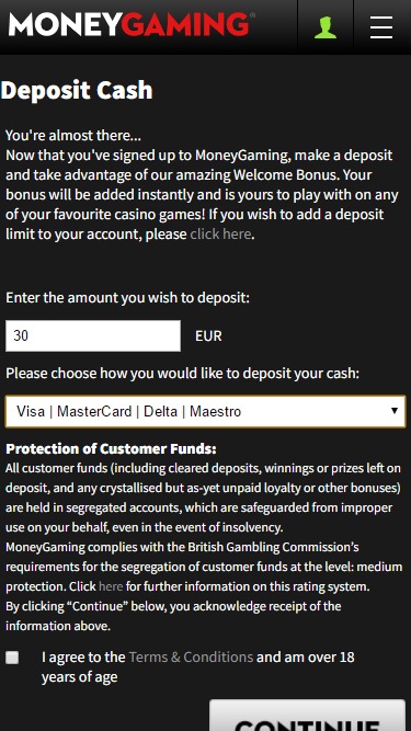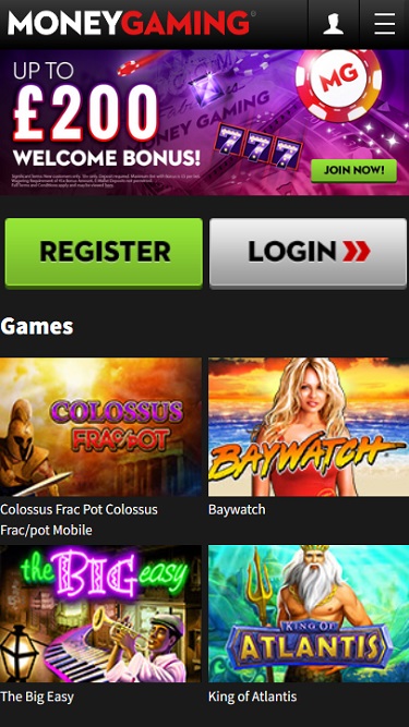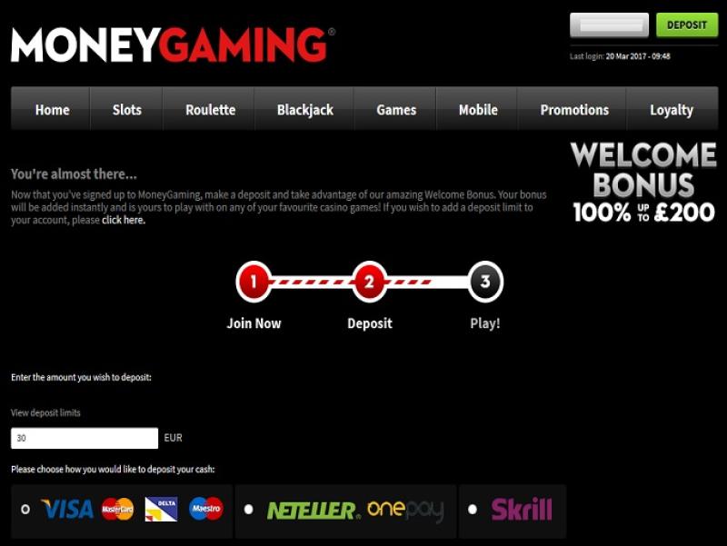 كازينو MoneyGaming مدعوم من Barcrest, IGT, Ainsworth, Aristocrat, Bally Technologies, Konami, Gamomat and Reel Time Gaming ، وتُقدم ألعابه عبر منصة لعب فوري عبر الإنترنت. كما يدعم الهاتف المحمول، ما يسمح لك باللعب عبر هاتفك الذكي أو جهازك اللوحي.خيارات الخدمات المصرفية في MoneyGaming Casino