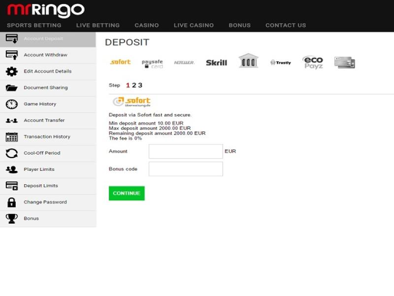 بالإضافة إلى ألعاب الكازينو القياسية، يقدم كازينو Mr Ringo خدمات الموزع المباشر والمراهنة الرياضية لعملائه.مشاكل اللاعبين