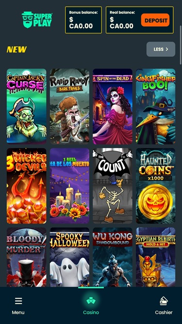 كازينو Mr SuperPlay يعمل بنظام Microgaming, Net Entertainment, Playtech, 1x2gaming, Barcrest, Big Time Gaming, ELK Studios, Evolution Gaming, EYECON, lightningboxgames, Novomatic, Play'n GO, Quickspin, Rabcat, Thunderkick, Wazdan, Pragmatic Play, Nolimit City, Red Tiger Gaming, Skillzzgaming, Fugaso, SYNOT Games, Skywind, Triple Edge Studios, Northern Lights Gaming, Stormcraft Studios, Switch Studios, All41 Studios, Gluck Games, Gameburger Studios, Pulse 8 Studios, Slot Factory, Neon Valley Studios, Shuffle Master, SpinPlay Games, Real Dealer Studios, GONG Gaming, On Air Entertainment, Buck Stakes Entertainment, Games Global, 2by2 Gaming, Ash Gaming, Blueprint Gaming, Greentube, NextGen, ProgressPlay, Tom Horn Gaming, WMS, Inspired Gaming, SG Interactive, CORE Gaming, Scientific Games, Reel Time Gaming, BF Games, Iron Dog Studio, Old Skool Studios, Foxium, Betdigital, Just For The Win, PearFiction Studios, Wild Streak Gaming, Slingshot Studios, Fortune Factory Studios, Gamevy, Crazy Tooth Studio, Groove Gaming, ReelPlay, Alchemy Gaming, Rarestone Gaming, Snowborn Games, Hacksaw Gaming, Max Win Gaming, Gold Coin Studios, Half Pixel Studios, Aurum Signature Studios, Lucksome Gaming, Area Vegas, Leap Gaming, Wishbone Games, Circular Arrow, HammerTime Games, INO Games, Nailed It! Games, Neko Games, Reel Kingdom, Oros Gaming and Light & Wonder ، وتُقدم ألعاب الكازينو عبر منصة لعب فوري عبر الإنترنت، تُحمّل مباشرةً من خلال متصفح الإنترنت. كما يدعم الكازينو اللعب عبر الأجهزة المحمولة، ما يعني إمكانية اللعب على هاتفك الذكي أو جهازك اللوحي.