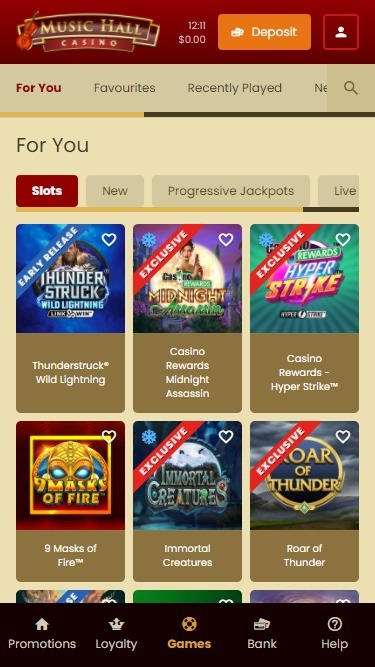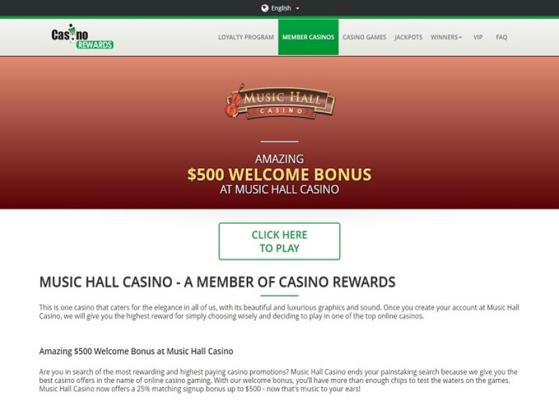 كما هو الحال في جميع كازينوهات Casino Rewards الأخرى، يُسجّل Music Hall جميع اللاعبين الجدد في برنامج Casino Rewards، الذي يُكافئهم بنقاط مجانية بناءً على مستويات لعبهم. تُربح النقاط مقابل كل دولار تُراهن به في الكازينو، لتصل في النهاية إلى مستوى يُمكنك تحويله إلى نقود حقيقية للعب على ماكينات القمار، وألعاب الطاولة، وماكينات الفيديو بوكر.