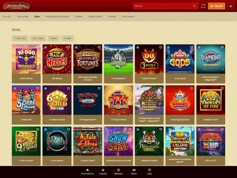 إذا كنت ترغب في لعب ماكينات القمار، فهناك مئات الألعاب المتاحة في كازينو ميوزيك هول. بفضل مكتبة مايكروغيمينغ الواسعة، يمكن للاعبين تدوير بكرات ألعاب مثل صراع العروش، وتومب رايدر، وباتمان، وغيرها.