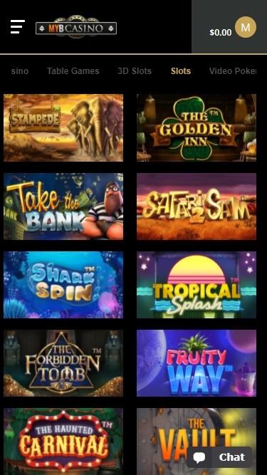 يقدم كازينو MYB عددًا لا بأس به من ألعاب السلوتس، حيث يعرض الموقع ألعابًا من BetSoft وبعض المطورين الأصغر. تبدو الألعاب جيدة، ولن تواجه صعوبة في العثور على لعبة بالميزات التي تريدها. تتوفر بعض الجوائز الكبرى التراكمية، لكننا لا ننصحك بتجربة جوائز BetSoft، فقد ثبت سابقًا أنها غير قابلة للربح. يدعم الموقع أيضًا ألعاب السلوتس للهواتف المحمولة، مما يسمح لك باللعب على هاتفك أو جهازك اللوحي.