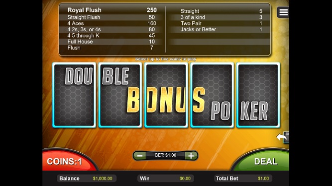 فيديو بوكر: Aces & Eights، All American Poker، Bonus Deuces Wild، Bonus Poker، Bonus Poker Deluxe، Deuces Wild، Double Bonus Poker، Double Double Bonus Poker، Double Double Jackpot Poker، Double Jackpot Poker، Jacks or Better، Joker Poker، Loose Deuces، Sevens Wild…