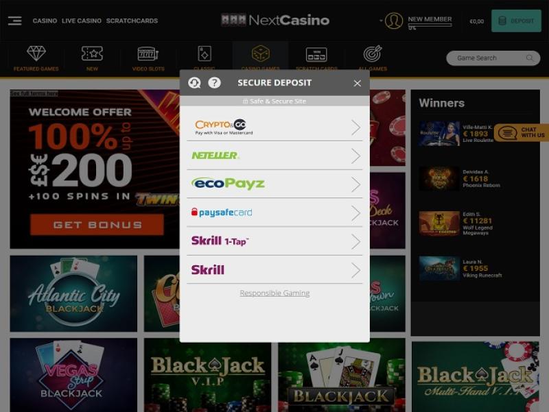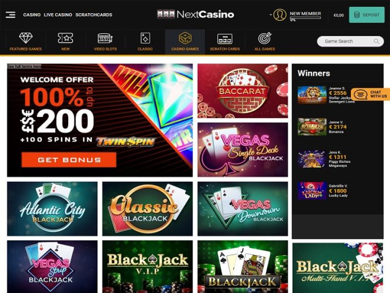 يعد NextCasino مدعومًا بنظام Microgaming, Net Entertainment, 1x2gaming, Big Time Gaming, Evolution Gaming, EYECON, Ezugi, iSoftBet, lightningboxgames, Oryx, Play'n GO, playson, Quickspin, Rabcat, Wazdan, Realistic Games, Booming Games, Stakelogic, Pragmatic Play, Red Tiger Gaming, IGT, Spinomenal, Red Rake Gaming, SYNOT Games, Skywind, Triple Edge Studios, All41 Studios, Gluck Games, Gameburger Studios, Neon Valley Studios, SpinPlay Games, Real Dealer Studios, GONG Gaming, Buck Stakes Entertainment, Games Global, Wizard Games, 2by2 Gaming, Ainsworth, bluberi, Blueprint Gaming, NextGen, NYX Interactive, Pariplay, Inspired Gaming, Gaming Realms, SG Interactive, Scientific Games, Reel Time Gaming, Authentic Gaming, Bally Wulff, Just For The Win, Slingshot Studios, Fortune Factory Studios, RubyPlay, Gamevy, Alchemy Gaming, Snowborn Games, Hacksaw Gaming, Lucksome Gaming and Area Vegas ، والذي يتيح للاعبين اختيار لعب مئات من ألعاب الكازينو من المطورين الكبار مثل Microgaming وNet Entertainment.