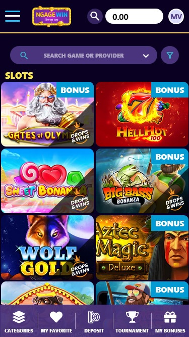 إذا كنت من محبي ألعاب القمار على الإنترنت، فستستمتع بالتأكيد بقضاء وقت ممتع في كازينو NgageWin. ستجد هنا ألعابًا رائعة مثل Gates of Olympus، وThe Dog House Megaways، وWolf Gold، وHot Fruits 27، وLucky Joker 10 ، وغيرها الكثير. تتوفر هنا مجموعة كبيرة من ألعاب ماكينات القمار، ونحن على ثقة بأنك ستحب الكثير منها.برنامج نقاط المنافسة