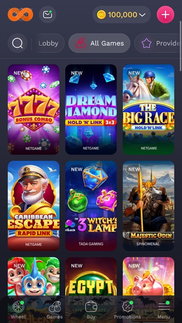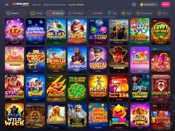 مثل العديد من الكازينوهات الاجتماعية الأخرى، يُقدّم NoLimitCoins للاعبين بشكل أساسي مجموعة متنوعة من ألعاب السلوتس على الإنترنت. مكتبته قوية نسبيًا، وتوفر أنواعًا متعددة من ألعاب السلوتس لتجربتها، مع أن عيبه الوحيد هو عدم توفر ألعاب الطاولة أو الموزعين المباشرين. على أي حال، لا داعي للبحث أكثر إذا كان هدفك الوحيد هو لعب ألعاب سلوتس رائعة.