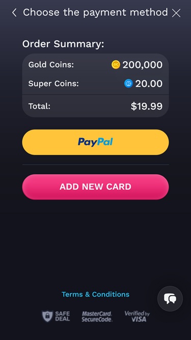 يوفر كازينو NoLimitCoins عدة طرق دفع لشراء العملات الذهبية من المتجر. تشمل الخيارات Visa و Mastercard و PayPal والتحويل البنكي و Discover .