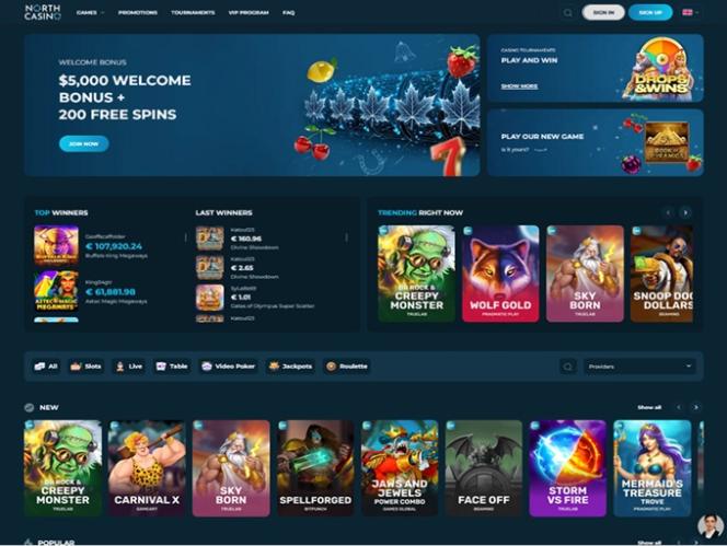 عندما تزور هذا الموقع الإلكتروني للمقامرة لأول مرة، وتبدأ الصفحة الرئيسية بالتحميل، تشعر وكأن الكون بأسره أمامك. هذا الشعور يطابق الواقع إلى حد ما. كازينو نورث هو صالة ألعاب إلكترونية تتميز بتنوع عروض المقامرة، ما يجعلها تحفة حقيقية.