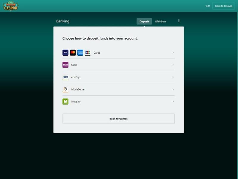 كازينو نوستالجيا مدعوم بواسطة Microgaming, Evolution Gaming, Rabcat, Triple Edge Studios, Northern Lights Gaming, Stormcraft Studios, Switch Studios, Electric Elephant Games, All41 Studios, Gameburger Studios, Pulse 8 Studios, Neon Valley Studios, SpinPlay Games, Real Dealer Studios, GONG Gaming, On Air Entertainment, Buck Stakes Entertainment, Games Global, Old Skool Studios, Foxium, Just For The Win, PearFiction Studios, Slingshot Studios, Fortune Factory Studios, Crazy Tooth Studio, Alchemy Gaming, Snowborn Games, Gold Coin Studios, Half Pixel Studios, Eurostar Studios, Aurum Signature Studios and Area Vegas ، مما يتيح للاعبين فرصة لعب مئات ألعاب الكازينو. يوفر الكازينو طريقتين لتقديم هذه الألعاب: منصة ويب، وكازينو قابل للتنزيل يُحمّل الألعاب مباشرةً على جهازك.خيارات الخدمات المصرفية في Nostalgia Casino