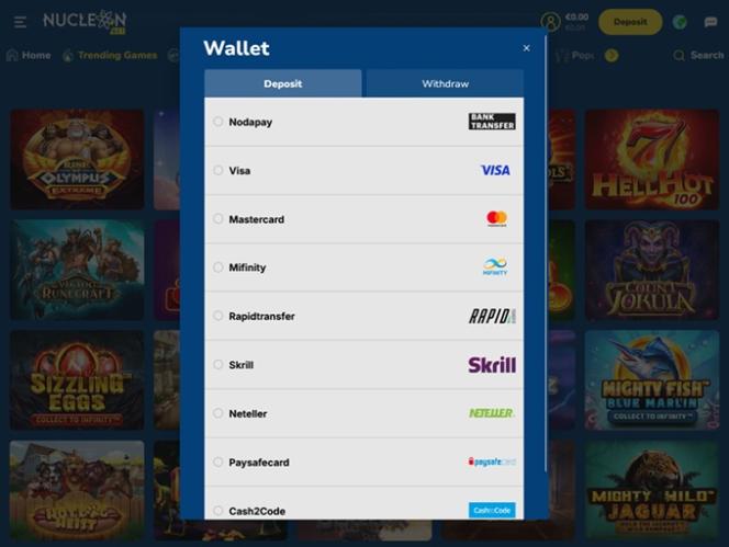خيارات الخدمات المصرفية في Nucleonbet Casino