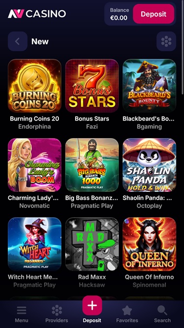 قائمة شركات الكازينو التي تُزوّد هذا الموقع الشيق بمحتوى مقامرة رفيع المستوى طويلة. من بين الأسماء التي ستتعرف عليها بالتأكيد: Pragmatic Play ، وNovomatic، وSpinomenal، وEzugi، وEndorphina ، وغيرها. كما تُقدّم العديد من العلامات التجارية الأخرى لكازينو NV ألعاب كازينو رائعة على الإنترنت، تتراوح من الألعاب الكلاسيكية الرائجة إلى الألعاب الجديدة المُصمّمة لتلبية احتياجات اللاعبين العصريين.