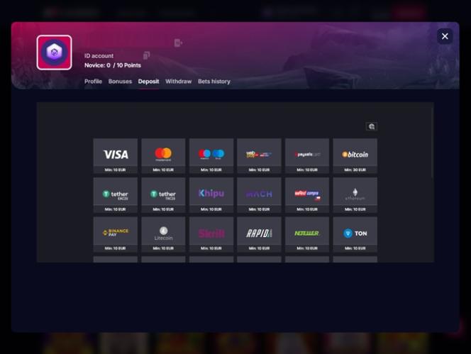 من خلال لوحة معلومات اللاعب الخاص بك، سيكون لديك الفرصة لتمويل حسابك في بضع خطوات سهلة.