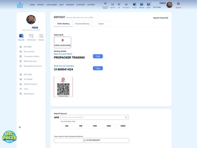 فيما يتعلق بطرق الدفع، يدعم كازينو OB9 خيارات الدفع المحلية المتاحة في ماليزيا وجنوب شرق آسيا. كما يقبل الموقع العملات المشفرة كخيار إيداع وسحب، بما في ذلك بيتكوين وإيثريوم وتيثر .