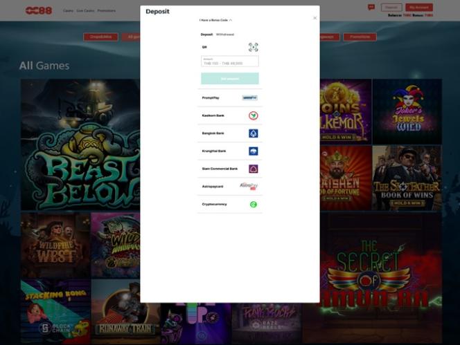 بما أن شركات الكازينو تسعى دائمًا لجعل منصاتها في متناول الجميع قدر الإمكان، قررت OC88 توفير عدة طرق دفع لمستخدميها لإجراء المعاملات. من الخيارات التقليدية: Visa و Mastercard و Apple Pay و Google Pay و Skrill و Neteller و MiFfinity وغيرها، بينما تشمل الخيارات الحديثة العملات المشفرة مثل Bitcoin و Ethereum و Litecoin و Tether و Ripple .