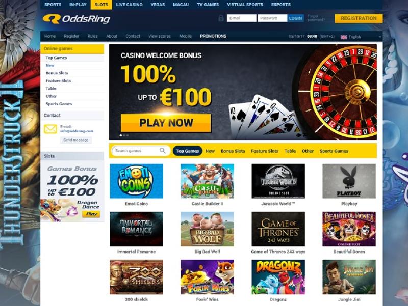 يُقدّم كازينو OddsRing مئات ماكينات القمار، مع مجموعة هائلة من ماكينات القمار الإلكترونية والألعاب الكلاسيكية. كما يُقدّم الكازينو جوائز كبرى تصاعدية بملايين الدولارات.