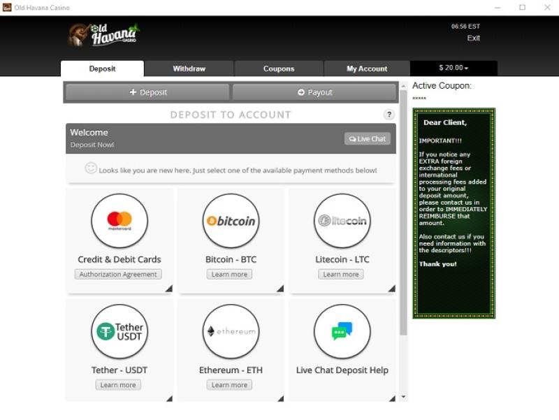 خيارات الخدمات المصرفية في Old Havana Casino