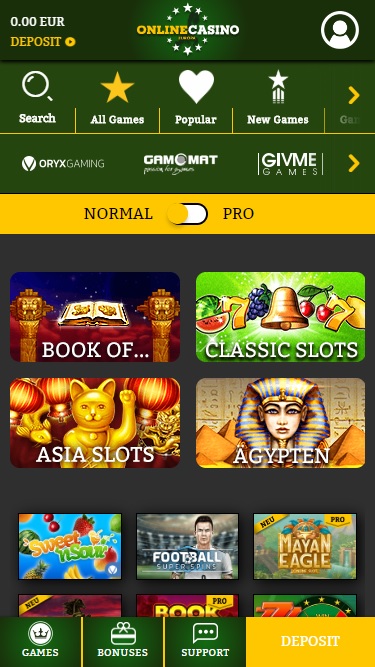 يعمل موقع OnlineCasino.eu بواسطة Microgaming, Net Entertainment, BetSoft, Amatic Industries, Big Time Gaming, Evolution Gaming, Genesis Gaming, iSoftBet, lightningboxgames, Oryx, Rabcat, Yggdrasil, Wazdan, Realistic Games, Booming Games, Pragmatic Play, Nolimit City, Red Tiger Gaming, Red Rake Gaming, Skillzzgaming, Fantasma Games, Kalamba, GiG Games, Triple Edge Studios, Stormcraft Studios, All41 Studios, Gameburger Studios, Pulse 8 Studios, Neon Valley Studios, Golden Rock Studios, TrueLab Games, SpinPlay Games, Games Global, 2by2 Gaming, NextGen, Tom Horn Gaming, Gamomat, Foxium, Just For The Win, Slingshot Studios, Golden Hero, Fortune Factory Studios, AvatarUX, Crazy Tooth Studio, Japan Technicals Games, Snowborn Games and Half Pixel Studios ، وتُقدم الألعاب عبر منصة لعب فوري عبر الإنترنت، تتيح لك التسجيل والإيداع واللعب عبر متصفح الإنترنت على جهاز الكمبيوتر. كما يتوفر اللعب عبر الهاتف المحمول، ما يسمح لك باللعب عبر هاتفك الذكي أو جهازك اللوحي.
