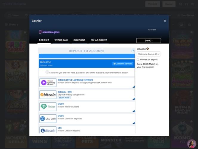 خيارات الخدمات المصرفية في OnlineCasinoGames Casino