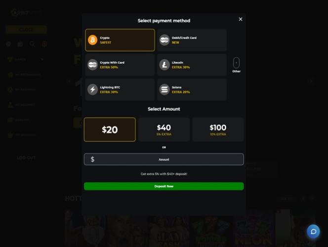 من المهم أيضًا ملاحظة توفر مجموعة واسعة من طرق الدفع، مع التركيز على العملات المشفرة ، مما يتيح للاعبين السحب الفوري. علاوة على ذلك، يقبل الموقع أيضًا خيارات الدفع التقليدية، مثل بطاقات الائتمان.