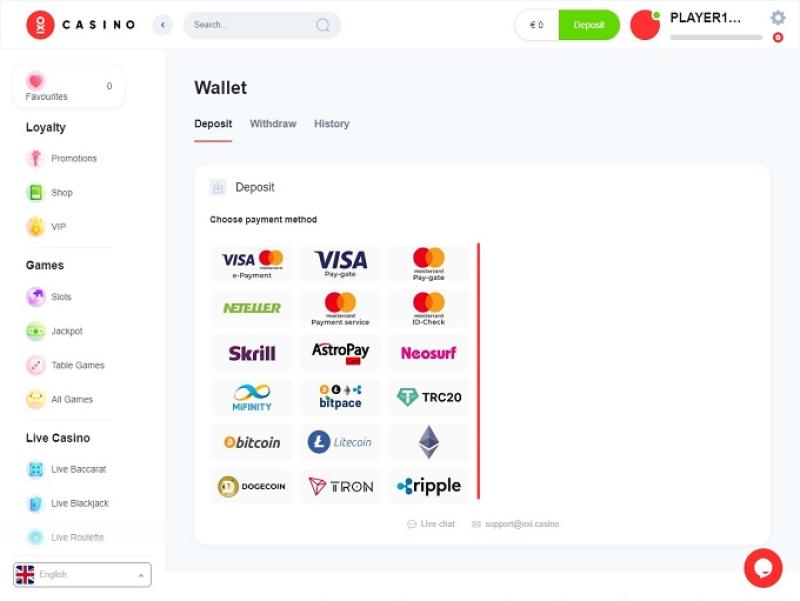 - قد يقوم كازينو OXI بتحديد الحد الأقصى والأدنى للمبلغ المسموح بإيداعه في الحساب.