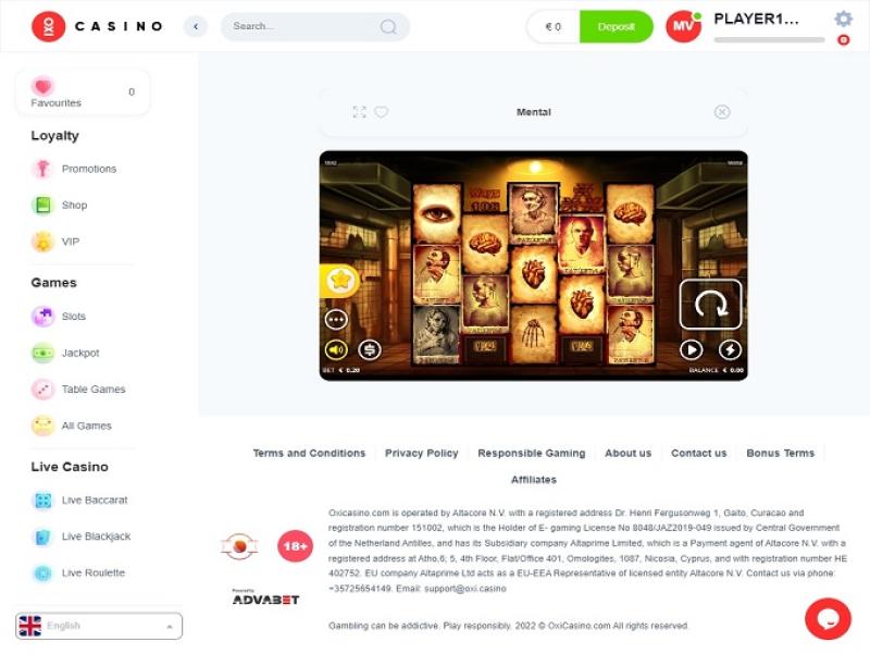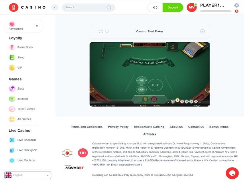كازينو OXI هو كازينو على الإنترنت مملوك لشركة Altacore NV ويتم تشغيله بواسطة هذه الشركة، وهي شركة مسجلة بموجب قوانين كوراساو، وتمتلك ترخيصًا صادرًا عن Antillephone NV.
