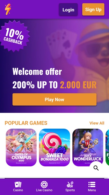 هذا كازينو رائعٌ للغاية برسوماته الجرافيكية المميزة، ويضمّ حيوان كسلان كتميمة بابتسامة عريضة وسترة أرجوانية لامعة تتناسب مع ألوان الموقع. هذا الكازينو أصيلٌ وجميلٌ للغاية، ونعتقد أنه سيحظى بقلوب العديد من لاعبي الكازينوهات الإلكترونية.