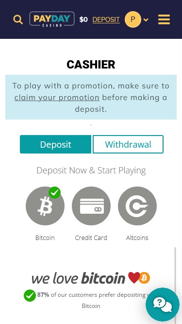 توفر هذه العلامة التجارية، التي تدعم العملات المشفرة، للاعبين خيارات دفع متنوعة وشائعة بالعملات المشفرة . يُعد استخدام العملات الرقمية خيارًا ممتازًا لإجراء معاملات فورية دون رسوم إضافية. مع ذلك، تجدر الإشارة إلى أن عمليات السحب عبر خيارات دفع أخرى قد تُفرض عليها رسوم.