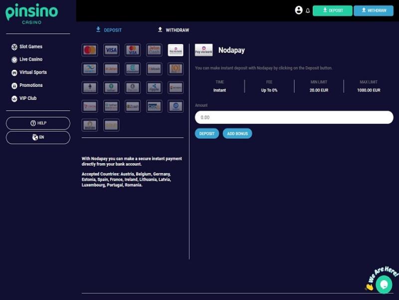 يسعى مشغلو كازينو Pinsino إلى جذب اللاعبين من ألمانيا وكندا وفرنسا والنرويج وفنلندا.