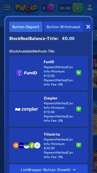 - يُحدد Pistolo حدود السحب وأوقات المعالجة الخاصة به، والتي قد تختلف بناءً على طريقة الدفع وحالة حسابك وعوامل أخرى. تزداد حدود السحب مع ارتفاع مستويات VIP.