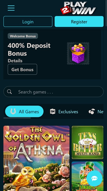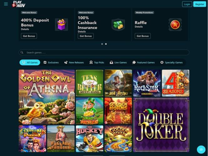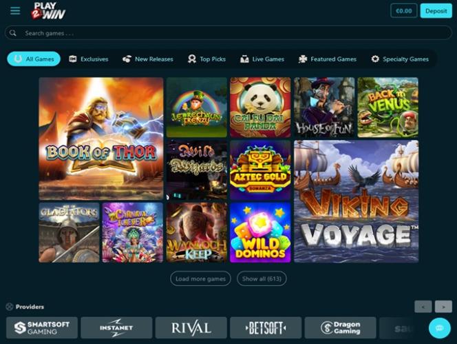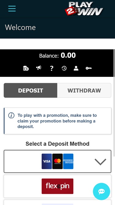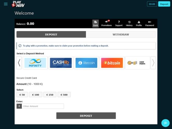 كازينو Play2Win مدعوم من BetSoft, Genesis Gaming, Rival, Saucify, Vivo Gaming, Arrows Edge, Radi8 Games, Fresh Deck Studios, Woohoo Games, Qora Games, Dragon Gaming and Dragoon Soft ، وكلاهما من مطوري البرامج، ويمكن العثور عليهما في كازينوهات أفضل بكثير. يتوفر الكازينو عبر برنامج قابل للتنزيل ومنصة ويب.خيارات الخدمات المصرفية في Play2Win Casino