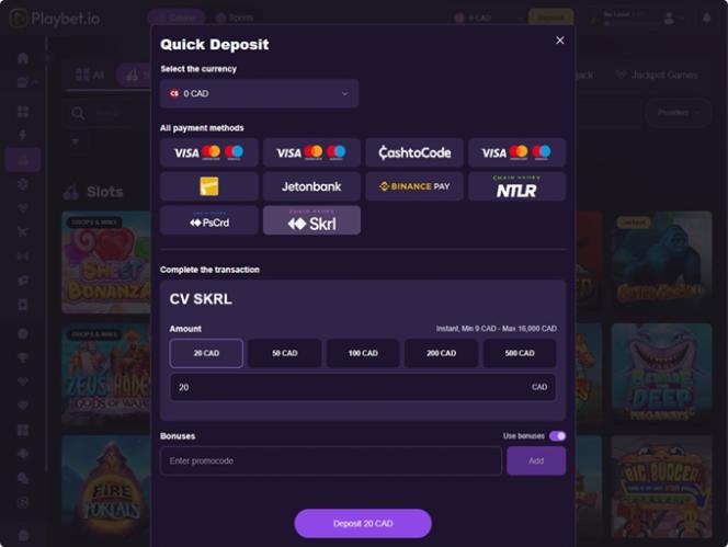 كما ذكرنا سابقًا، هذا كازينو مخصص للعملات المشفرة فقط ، ويمكن إجراء الإيداع والسحب بالعديد من العملات الرقمية الشهيرة، بما في ذلك Bitcoin وBitcoin Cash وDogecoin وCardano وLitecoin وEthereum وTron وTether...