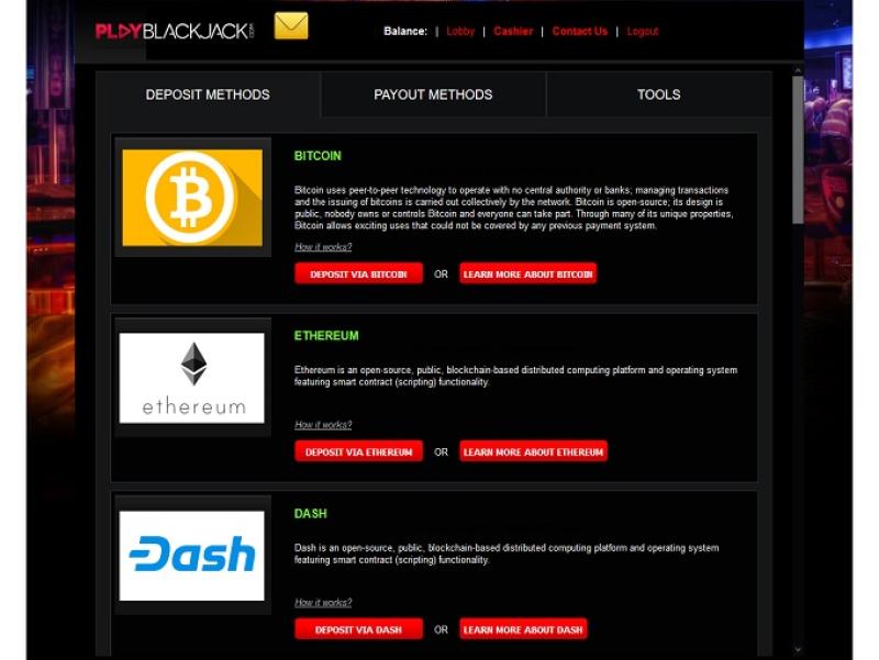 كازينو PlayBlackjack مدعوم من Digital Gaming Solutions, Multi Slot Casinos and Proprietary ، وتُقدم ألعاب الكازينو عبر منصة ويب. كما يتوفر موقع جوال لمن يرغبون في اللعب على هواتفهم الذكية أو أجهزتهم اللوحية.خيارات الخدمات المصرفية في PlayBlackjack