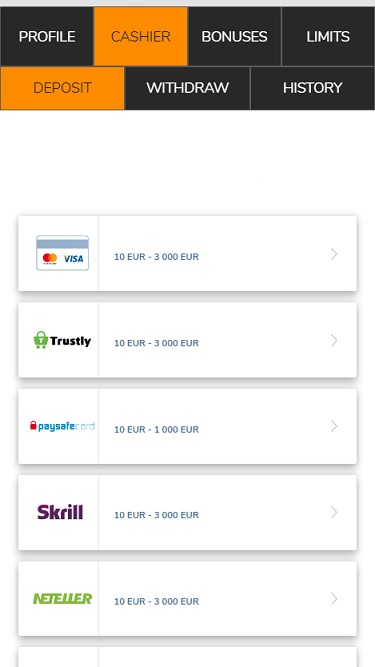 ستجد أدناه خيارات الخدمات المصرفية المتنوعة المتاحة في كازينو Playigo.
