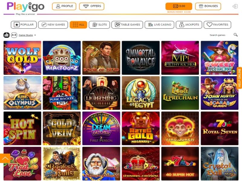 سيجد اللاعبون مكتبة ألعاب سلوتس واسعة في Playigo، تضم ما يقرب من 2000 لعبة من عشرات مطوري الألعاب. ستجدون ألعابًا من أمثال Microgaming وNetEnt وPlay'n GO وWazdan وAmatic وPariplay وغيرها الكثير. تتوفر جوائز كبرى متزايدة، وجميع ألعاب السلوتس تقريبًا مزودة بأوضاع لعب للهواتف المحمولة، مما يتيح لكم اللعب أثناء التنقل من هواتفكم الذكية أو أجهزتكم اللوحية.برنامج نقاط المنافسة