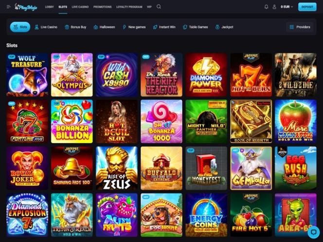 على الرغم من أن كازينو PlayMojo يُقدم مجموعةً واسعةً من ألعاب الطاولة، وألعاب الموزعين المباشرين، والألعاب المتخصصة، إلا أن مجموعته الأوسع تكمن في قسم ماكينات القمار الإلكترونية . إذا كنت من مُحبي ماكينات القمار وتبحث عن الكازينو الإلكتروني المُناسب، فنعتقد أنك ستجد ضالتك. إليك بعض أشهر الألعاب التي يلعبها اللاعبون هنا: