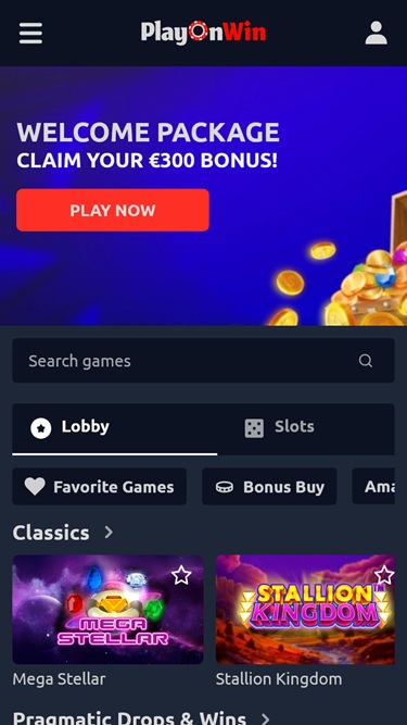 ويأتي أيضًا مع عرض ترويجي جذاب مع متطلبات مراهنة منخفضة نسبيًا ونظام ولاء مجزي، لذلك للوهلة الأولى، على الرغم من أن الواجهة تبدو أكثر توجهاً نحو الرياضة، إلا أن PlayOnWin لديه الكثير ليقدمه للاعبي الكازينو.